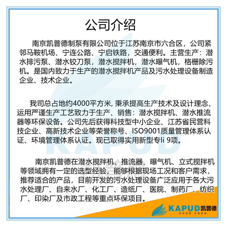 在常规工况条件下,建议优先选用干式安装,有噪声或视觉要求的,建议选用潜水式安装。我公司可协助用户在特殊环境下的选型。