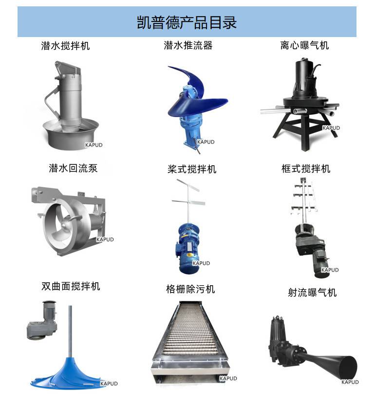 对于水深超过5米或浓度超过规定的,在选型 时应考虑加大功率或提高搅拌机的工作转速,以确保在大容量和高浓度的介质中达到搅拌效果。