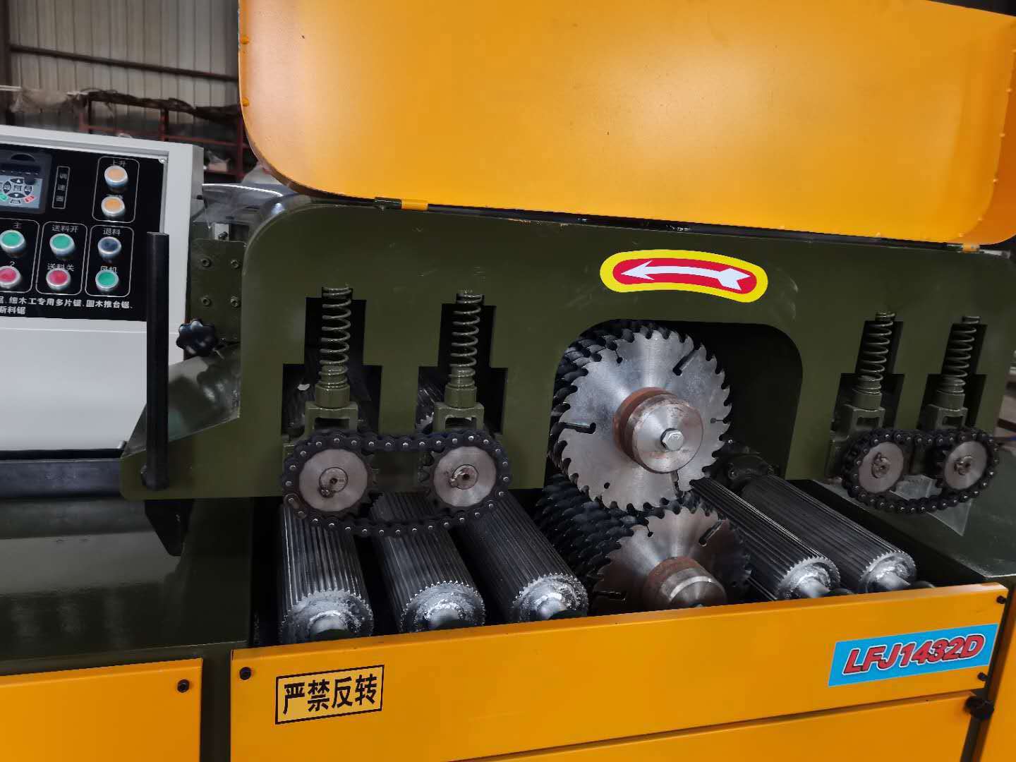 林亿上下轴方木多片锯,加工高度电动升降调整,进料切削速度数控变频控制,锯片冷却采用后轴防漏进水,机器落地可用,简单方便,广泛应用于托盘,包装,家具,木工板,地板,桑拿板等领域使用。