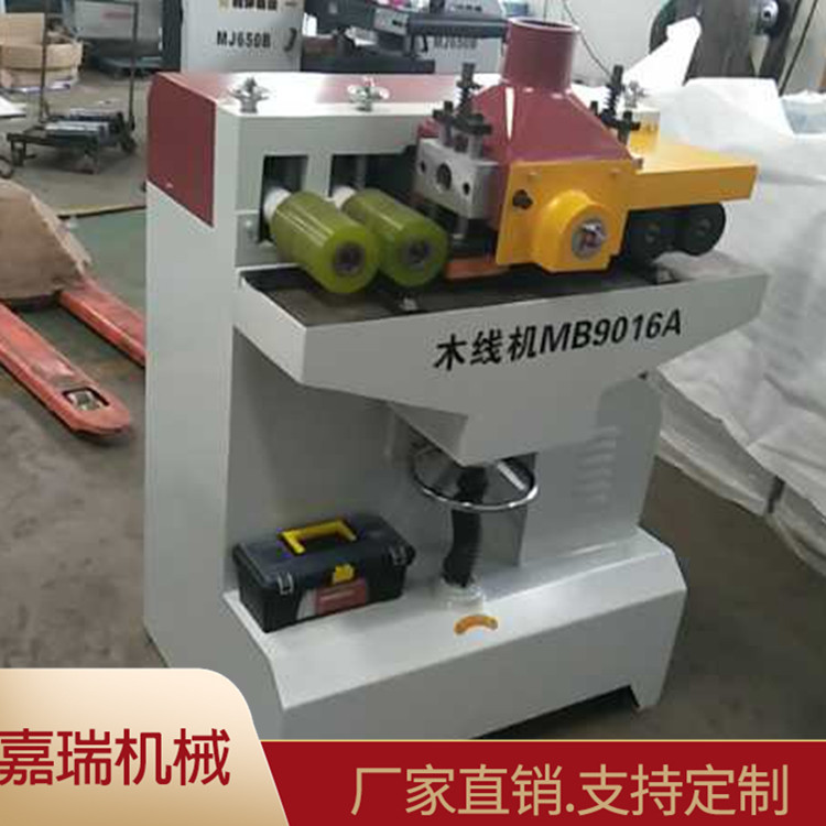 木线机前后压板装置调整方便,主要用于加工各种木线条及装饰木线条等,也可做为小型压刨使用,刨削出等厚板、方材,送料系统平稳有力,加工精细、准确,表面光洁,线条清晰,机械性能稳定,使用安全可靠,操作方便,保证加工出高质量的木线条。广泛用于家具制造行业、相框制造行业。