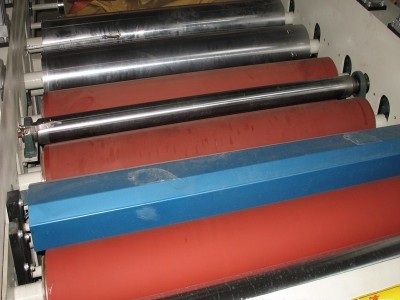 设备配置:除尘吸尘机构,单独涂胶水机构、放纸贴纸机构、自动切纸机构、热压机构。设备特点:自动放卷、纠偏放斜、速度可调、静电消 除、除尘、预加热、涂胶、热压及冷压。设备主要特征:1:设备配有吊机,更换卷材时可一人操作。2:单独表明除尘系统配备相应的吸尘器,让贴涂表明无瑕疵。3:每个独 立单机都有紧急开关,可避免事故发生。4:采用气压成型可以让表面受力可控制大小,淘汰老式贴纸机使用弹簧做压力单一的性。5:变频调速再配备大功率电机让机器整体速度一致,工作时每块板材间距一致。6:涂胶采用 离合装置,表明涂胶更均匀。7:冷压和热压于一体可在板材成型以后立马使用,不开胶。
