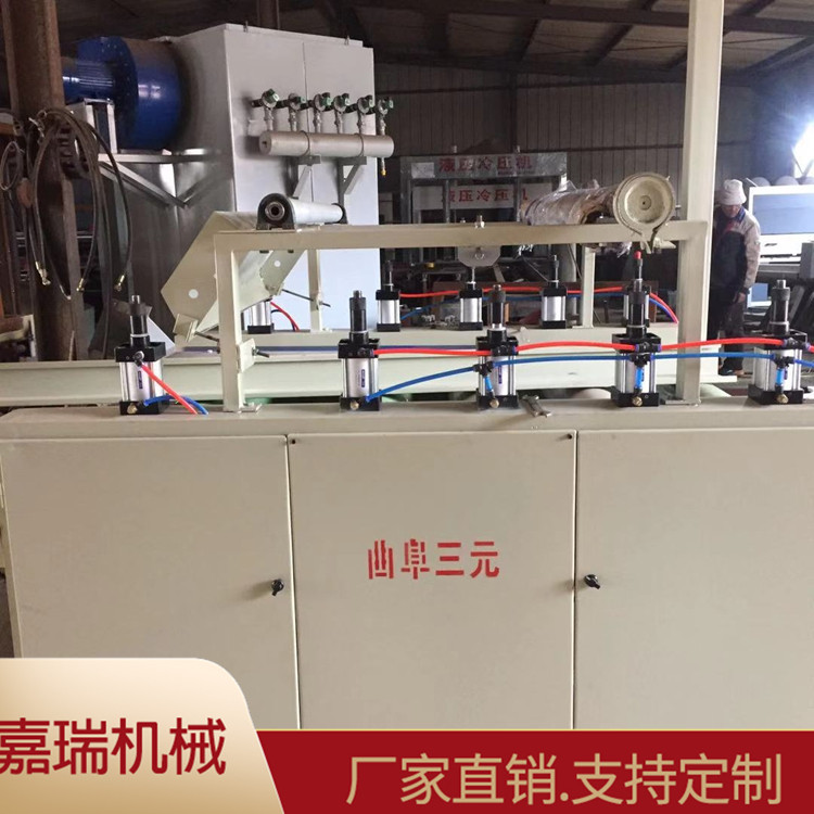 设备配置:除尘吸尘机构,单独涂胶水机构、放纸贴纸机构、自动切纸机构、热压机构。设备特点:自动放卷、纠偏放斜、速度可调、静电消 除、除尘、预加热、涂胶、热压及冷压。设备主要特征:1:设备配有吊机,更换卷材时可一人操作。2:单独表明除尘系统配备相应的吸尘器,让贴涂表明无瑕疵。3:每个独 立单机都有紧急开关,可避免事故发生。4:采用气压成型可以让表面受力可控制大小,淘汰老式贴纸机使用弹簧做压力单一的性。5:变频调速再配备大功率电机让机器整体速度一致,工作时每块板材间距一致。6:涂胶采用 离合装置,表明涂胶更均匀。7:冷压和热压于一体可在板材成型以后立马使用,不开胶。