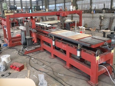 1 、该自动锯由红外线定位部分、预装板设备、纵锯小车、纵锯小车压紧结构、纵锯小车链条传送设备、纵切锯头、横锯架、横锯小车、横切锯头、横锯小车链条传送设备、自动堆垛装置等组成。