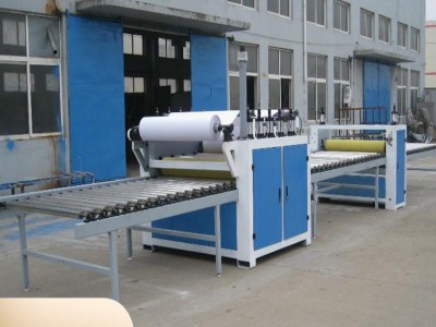设备配置:除尘吸尘机构,单独涂胶水机构、放纸贴纸机构、自动切纸机构、热压机构。设备特点:自动放卷、纠偏放斜、速度可调、静电消 除、除尘、预加热、涂胶、热压及冷压。设备主要特征:1:设备配有吊机,更换卷材时可一人操作。2:单独表明除尘系统配备相应的吸尘器,让贴涂表明无瑕疵。3:每个独 立单机都有紧急开关,可避免事故发生。4:采用气压成型可以让表面受力可控制大小,淘汰老式贴纸机使用弹簧做压力单一的性。5:变频调速再配备大功率电机让机器整体速度一致,工作时每块板材间距一致。6:涂胶采用 离合装置,表明涂胶更均匀。7:冷压和热压于一体可在板材成型以后立马使用,不开胶。