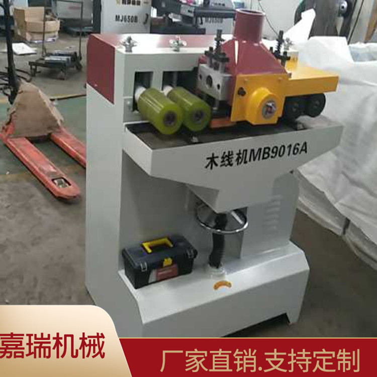 木线机前后压板装置调整方便,主要用于加工各种木线条及装饰木线条等,也可做为小型压刨使用,刨削出等厚板、方材,送料系统平稳有力,加工精细、准确,表面光洁,线条清晰,机械性能稳定,使用安全可靠,操作方便,保证加工出高质量的木线条。广泛用于家具制造行业、相框制造行业。