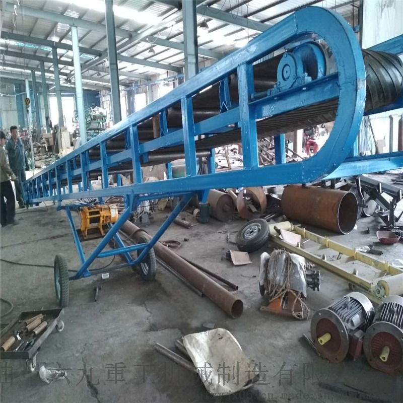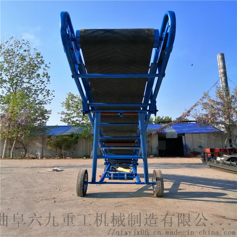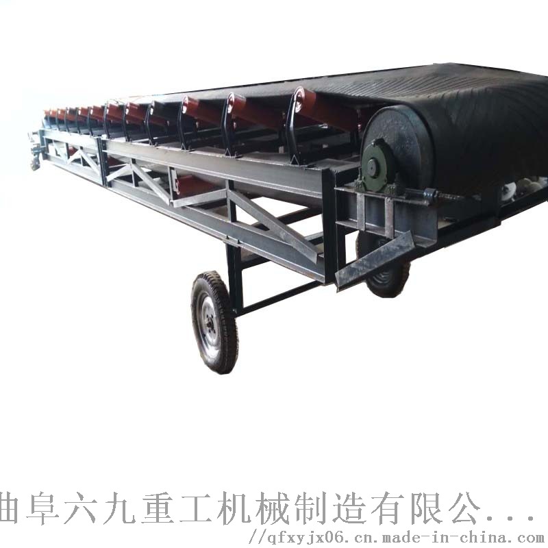 移动皮带输送机适用于散状物料或成件物品的短途运输和装卸工作。采用钢管结构,轻巧美观,机动性好。转动装置为电动滚筒,并配有充气轮胎和钢轮两种行走轮。倾角可调。