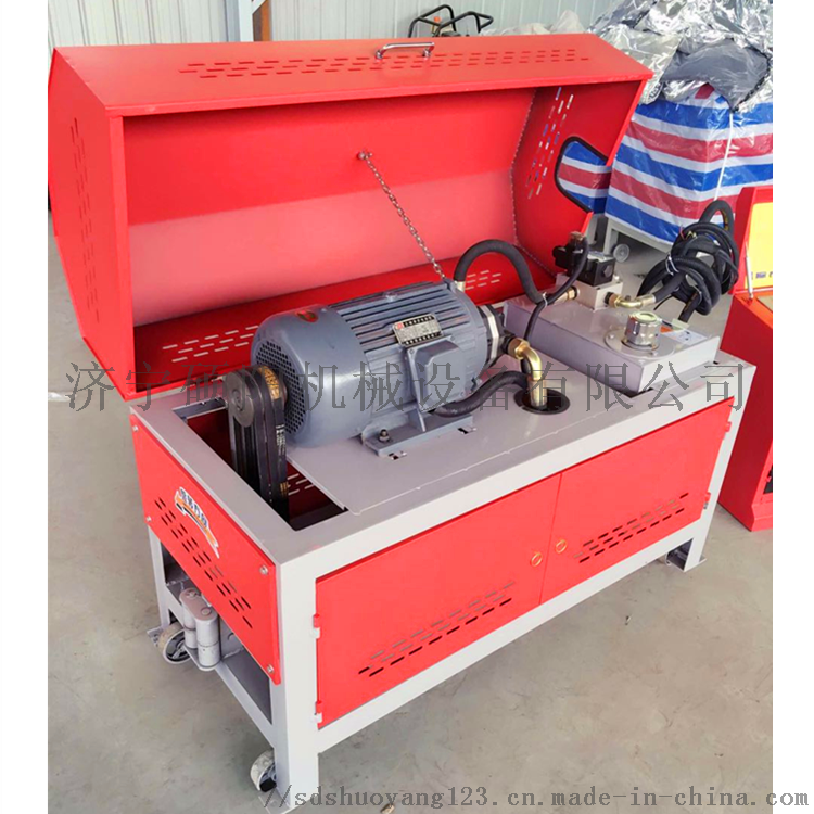 3、使用时应把钢筋的一端插入调直机至出口端,然后调整转体中的两个螺栓。使已调直的钢筋在调直机的旋转中自动吐出。