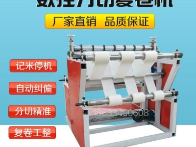 复卷机采用PLC电脑编程技术,人机界面操作,自动喷胶、变频调速、封边、修边一次完成。