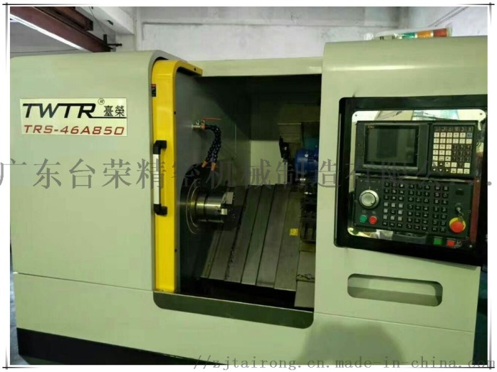 广东台荣TRS-46A850连体数控车床性能特点 斜床身数控车床是一种高精度、高效率的自动化机床。配备多工位刀塔或动力刀塔,机床就具有广泛的加工艺性能,可加工直线圆柱、斜线圆柱、圆弧和各种螺纹、槽、蜗杆等复杂工件,具有直线插补、圆弧插补各种补偿功能,并在复杂零件的批量生产中发挥了良好的经济效果。