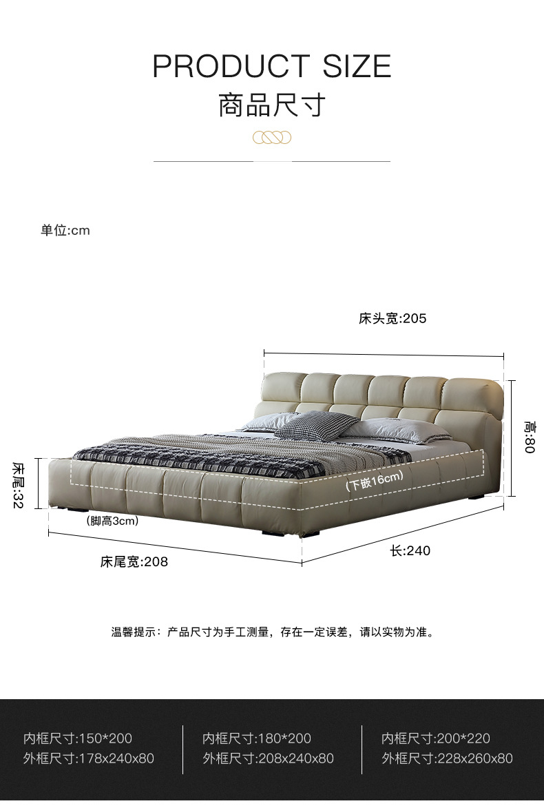 颜色真皮床(单床),真皮床+1个床头柜,真皮床+2个床头柜,真皮床+椰棕床垫,真皮床+椰棕床垫+1个床头柜,真皮床+椰棕床垫+2个床头柜,真皮床+乳胶床垫,真皮床+乳胶床垫+1个床头柜,真皮床+乳胶床垫+2个床头柜