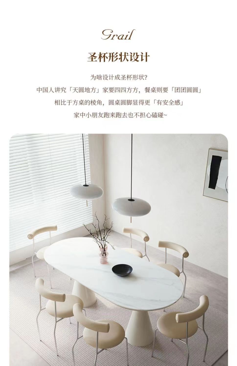 新款法式奶油风岩板餐桌家用网红桌大小户型椭圆形现代简约圣杯桌