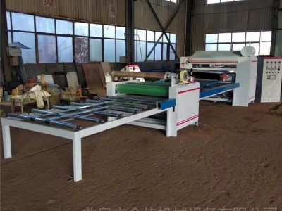 全自动电脑程控,自动完成涂胶,加热贴面.烘干.两次冷压,三次热压于一体,靠链条、链轮传送,结构紧凑合理,操作方便,速度可调。适用于防火板的表面贴面,还能将各种木质板(三合板、石膏板、密度板、刨花板)进行深加工贴面.如木纹纸、铝箔、免漆纸、高分子膜等.可生产各种花色的豪华装饰板.利润倍增,适合家具厂、人造板厂、乡镇企业和个体户接产.设备分为大中小多种型号,还可根据客户要求加工定做。